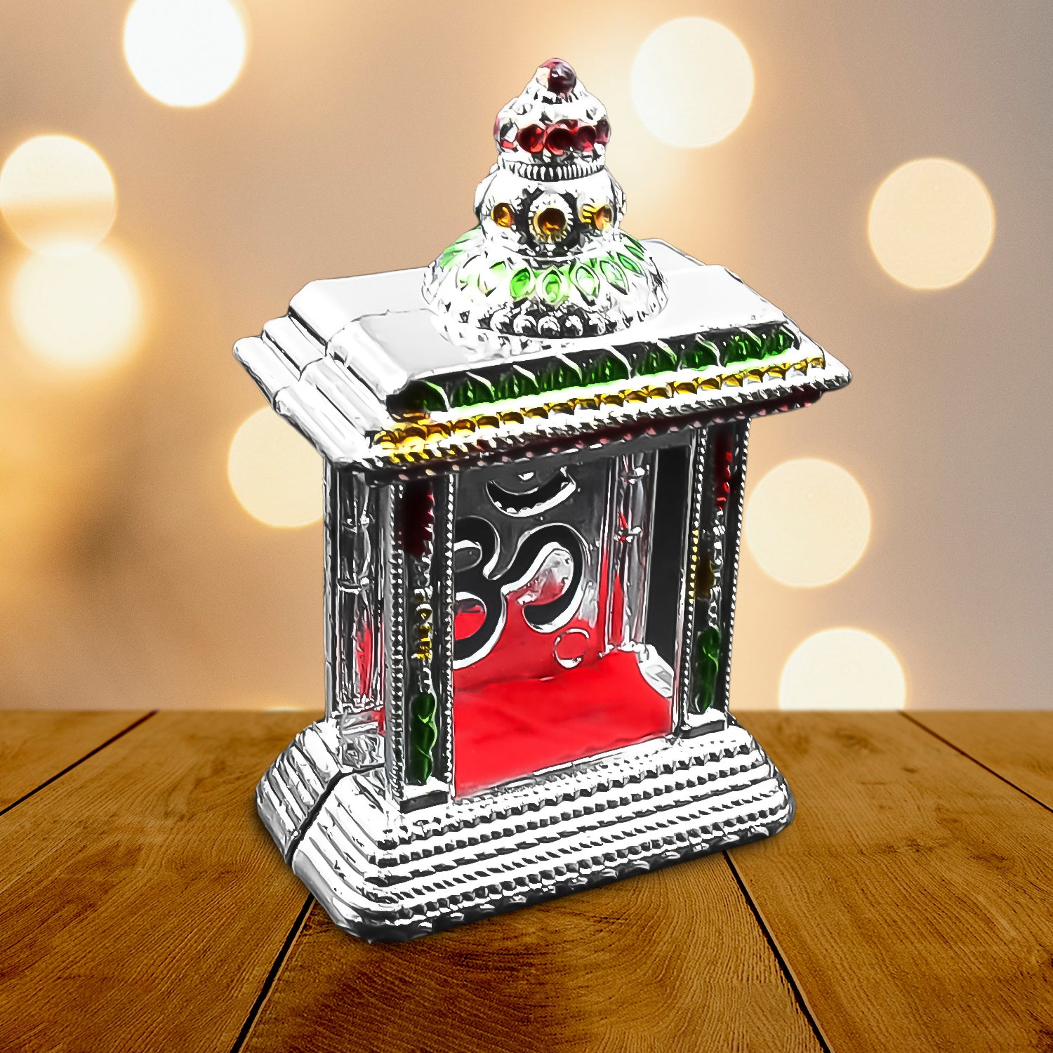 Transform your sacred space with this exquisite, handcrafted Om temple from Uppal Trading. Measuring 13 x 9 x 5 centimeters, this lightweight yet durable multicolored temple showpiece features intricate detailing and a convenient adhesive base for easy installation. Perfect for your car dashboard, home temple, or office desk, this versatile piece weighs just 75 grams and requires minimal maintenance thanks to its dust-resistant finish. The temple's thoughtful design incorporates the powerful Om symbol, making it an ideal choice for creating a serene atmosphere in any setting. Whether as a meaningful addition to your pooja room or a heartfelt gift for special occasions like housewarmings, weddings, or festivals, this temple piece promises to be a cherished spiritual accent. Each piece is uniquely handcrafted in India, ensuring distinctive character while maintaining consistent quality in its high-quality plastic construction.